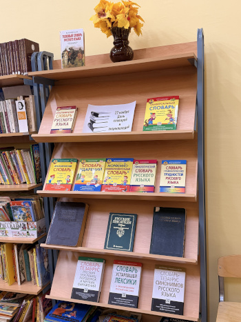 В читальном зале библиотеки была оформлена книжная выставка, где представлены различные виды словарей: толковые, энциклопедические, орфографические, словари иностранных слов и фразеологические сборники.