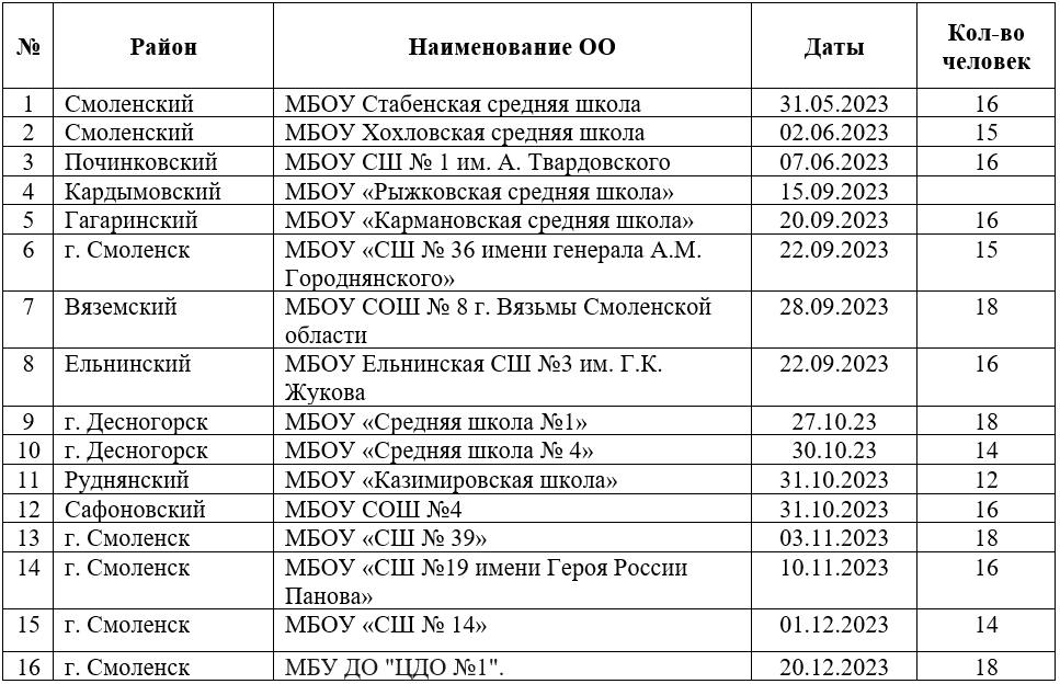 В мероприятиях приняло участие 15 школьных команд из 5 муниципальных образований Смоленской области (244 участника).