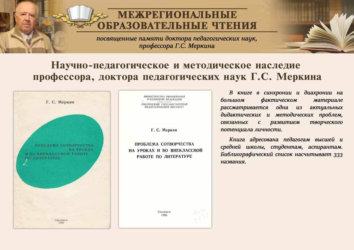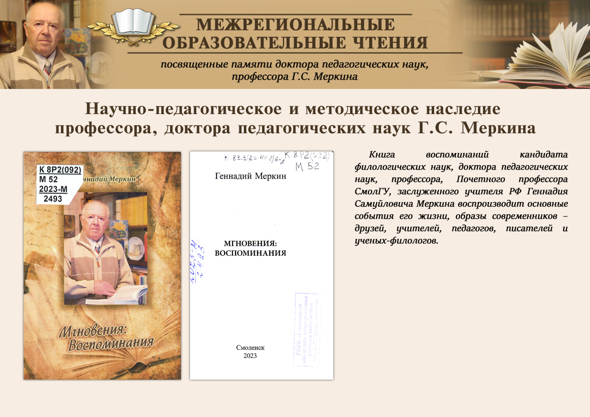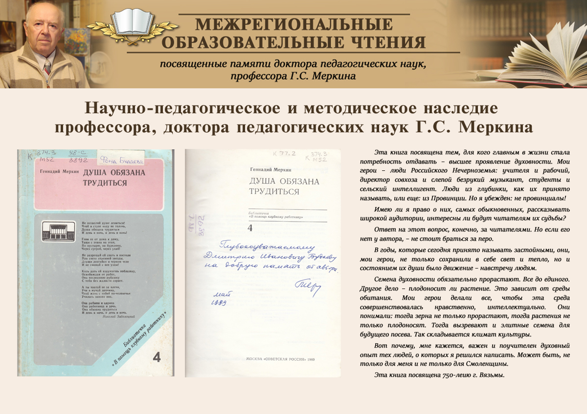 Выставка «Научно-педагогическое и методическое наследие Г.С. Меркина»