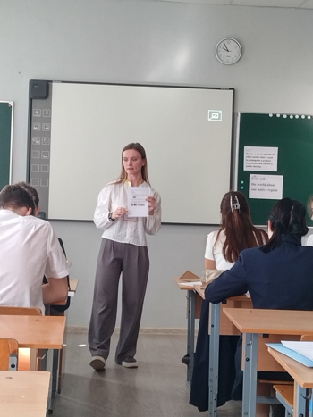- Ермакова Виктория Витальевна, учитель английского языка, муниципальное бюджетное общеобразовательное учреждение средняя общеобразовательная школа № 1 с углублённым изучением отдельных предметов имени Ю.Н. Янова г. Вязьмы, дала урок английского языка в 10 классе;