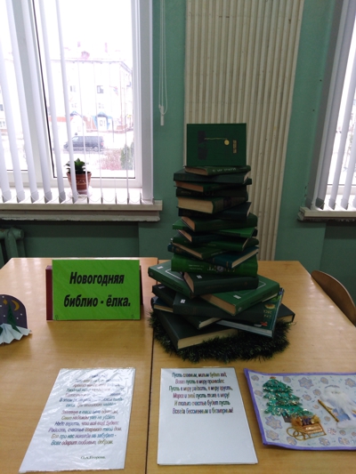 К Новогоднему празднику в школьной библиотеке оформлена книжная выставка – экспозиция «Библио – ёлка».