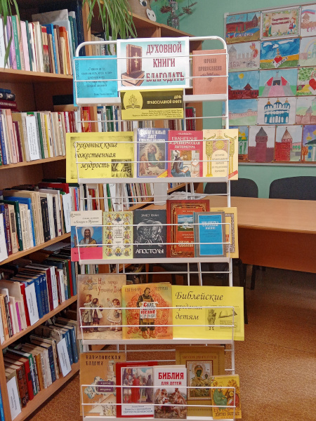 В информационно-библиотечном центре МБОУ «Средняя школа №29 с углублённым изучением отдельных предметов» города Смоленска педагог-библиотекарь Федоренкова Зоя Ивановна оформила книжную выставку к Неделе Православной книги «Духовной книги благодать».