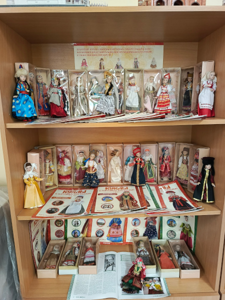 На выставке представлена полная коллекция кукол в народных костюмах, сделанных в ручную. К каждой кукле прилагается журнал, посвященный той или иной народности. В журнале подробно описано: где жили, чем занимались, какими были их традиции и обычаи. Выставка привлекла внимание и ребят, и учителей.