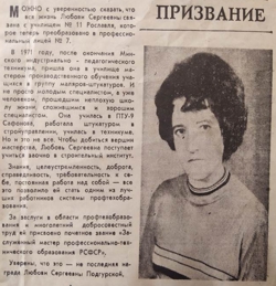 Моя мама Подгурская (Петрофанова) Любовь Сергеевна после окончания школы в 1962 году поступила в строительное училище № 2 г. Сафонова по профессии штукатур, после окончания по комсомольской путевки она была направлена на объекты большой химии в частности «Дорогобуж-хим-строй» проработав 2 года получив хорошую практику, а также закончив вечернюю школу в 1966 поступила в Минский индустриально- педагогический техникум.