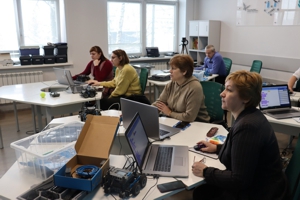 За время обучения слушатели познакомились с электронным набором Знаток, робототехническими наборами Robotrack Стажер А, VEX IQ, Lego Spike Prime и Lego Ev3 Mindstorm, узнали, как организовать взаимодействие нескольких роботов Lego Ev3 MindStorm через протокол Bluetooth и научились виртуальному управлению роботом в среде VEX VR.