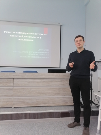- О развитии интереса у обучающихся говорил и Омельченко К.В., педагог дополнительного образования детского технопарка «Кванториум» на базе МБОУ «СШ №31» г. Смоленска. Он представил пошаговую разработку разноуровневых междисциплинарных проектов на стыке информатики и медицинских наук.