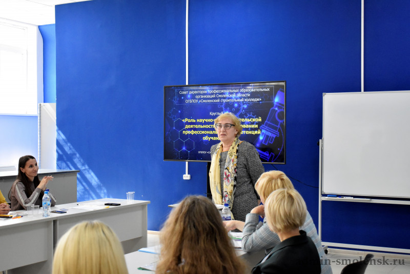 25 мая 2022 года на базе Смоленского строительного колледжа в современных мастерских, созданных в 2021 году в рамках федерального проекта «Молодые профессионалы» национального проекта «Образование», состоялся круглый стол «Роль научно-исследовательской деятельности в формировании профессиональных компетенций обучающихся» по инициативе студенческого научного общества «Золотое сечение» Смоленского строительного колледжа при поддержке Совета руководителей студенческих научных обществ профессиональных образовательных организаций Смоленской области.